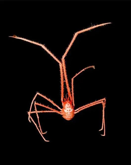 海洋所异胸虾(新种)是铠甲虾新种,隶属甲壳动物亚门、软甲纲、十足目、异胸虾科。 成体长约18厘米,头胸甲胄区长有六边形排列的刺,螯足和步足细长,长有6或7列尖刺。该种与柳珊瑚共生,于2017年、2018年分别发现于卡罗琳海山和麦哲伦海山1246~1366米深处。
