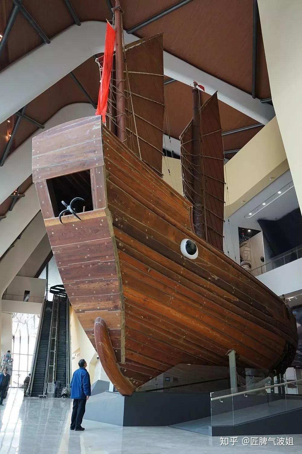 4 x7 e9 h4 U& e 海上丝绸之路展厅的核心展品是一艘根据--宋元时期中国古代典型远洋货船特点而设计的,全木质结构仿古船。该船长27.8米,外宽8.6米。堪称国宝级展品。