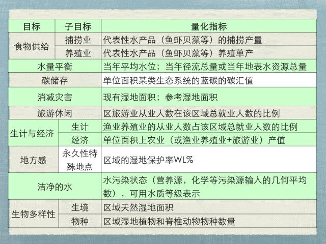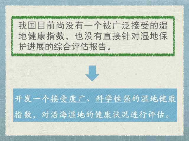 A:指数以滨海湿地生态系统服务功能为评价对象。根据我国湿地管理的相关法规,结合人类福祉与生态系统服务研究成果,参考全球海洋健康指数,确定出当前湿地生态系统保护的主要目标,即9个具体量化指标: ! m3 F% e. c- V