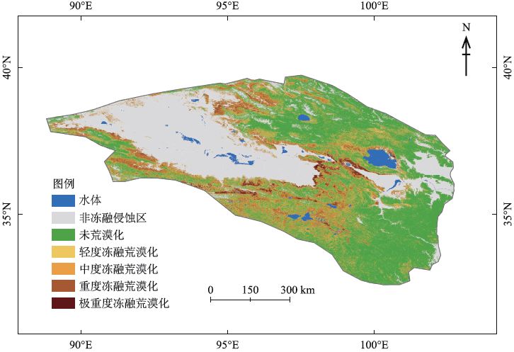 0 V3 ?+ n4 b% h# o/ X4 g( p6 U ▲ 2020 年青藏高原东北部冻融荒漠化空间分布 ) E7 a# @% O( G4 |1 O6 c