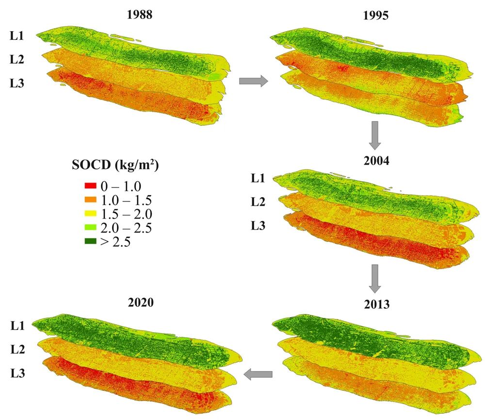 : F K# v& C) Q# c! E. [) j1 G 崇明岛土壤有机碳密度(SOCD)四维时空格局重建。 坚持科研攻关着力提升海岸带空间规划和用途管制技术水平加强科研攻关,不断发展海岸带空间规划关键技术。海岸带重点实验室立足传统优势,开展海岸带地区国土空间规划的关键技术研究。提出了一套兼具针对性和适用性且直接服务于空间规划的海岛开发适宜性评价技术方法,为优化国土空间开发保护格局、完善区域主体功能定位提供了技术支撑。参与编制《国家公园设立规范》《自然保护地生态旅游规范》等标准研制和全国国家公园空间布局方案。立足海洋与海岸带空间管理的现实问题和长远挑战,牵头编撰《海洋空间规划与海岸带管理》《国土空间规划陆海统筹理论与实践》,为新时期我国海洋与海岸带空间管理提供新思路、新方法与新理念。其中,《海洋空间规划与海岸带管理》入库2022年度海洋优秀科技图书。聚焦主责主业,强力支撑国土空间规划和用途管制核心职责。海岸带重点实验室围绕主责主业,深化海洋与海岸带空间规划关键技术研究及应用,系统构建“空间评价-分区管控-实施传导-管控规则”的规划技术体系,为建设国土空间体系提供有力支撑。参与国土空间规划立法、海域法修订等工作,撰写海岸带管理立法建议。负责《省级国土空间规划编制指南》海洋部分,这是全面开展国土空间规划工作后印发的首个全国性技术指引文件。开展了全国、区域、省、市、县、片区多层级规划海洋实践探索,其中山东、青岛分别是全国首批省级和市级海岸带规划试点,《崖州湾海洋空间详细规划》是基于国土空间规划改革新框架的首个海洋空间详细规划试点。系统开展了基于陆海统筹的海洋空间年度利用计划和海岸带空间用途管制研究,相关文章《新时期完善海域空间用途管制制度的政策建议》被中宣部“学习强国”平台选用。开展基于水依赖程度的海岸带空间用途研究,为海岸建筑退缩线配套政策提供技术支撑。2021年联合开展《深圳市海洋发展规划(2020-2035)》纲要及专题研究,相关专题报告获得多名院士和主管部门肯定性评价。《海岸带保护与利用规划编制规程》成功立项山东省地方标准,成为我国首个立项的“海岸带保护与利用规划”省级标准。率先走出国门,为全球海洋空间规划贡献中国方案。在全球层面,海岸带重点实验室参与编制的海洋空间规划国际指南由联合国教科文组织和欧盟委员会联合发布,为沿海国家海洋空间规划的编制提供基础性和技术参考。在区域层面,海岸带重点实验室牵头完成东亚海国家海洋空间规划政策与实施评估工作,相关报告通过东亚海协作体缔约国第25次政府间会议的审议;联合中国海洋发展基金会、联合国教科文组织政府间海洋学委员会以及泰国、韩国、印度尼西亚等国家开展的“海洋十年”项目——“加速海洋空间规划在西太平洋及邻近地区实施”获联合国教科文组织批复。在双边层面,海岸带重点实验室牵头完成的泰国兰岛海域海洋空间规划方案由泰国地方政府印发实施,成为国际上首个具有法律效力的采用我国技术编制完成的海洋空间规划方案。4 A7 I ~, x% F; Y' s& f$ L