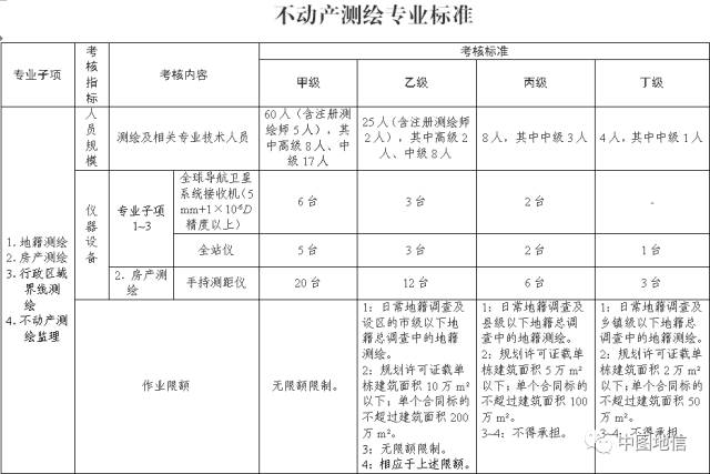 各等级测绘资质单位的办公场所:甲级不少于600m2,乙级不少于150m2,丙级不少于40m2,丁级不少于20m2。 7 x0 ] e$ `: i8 o