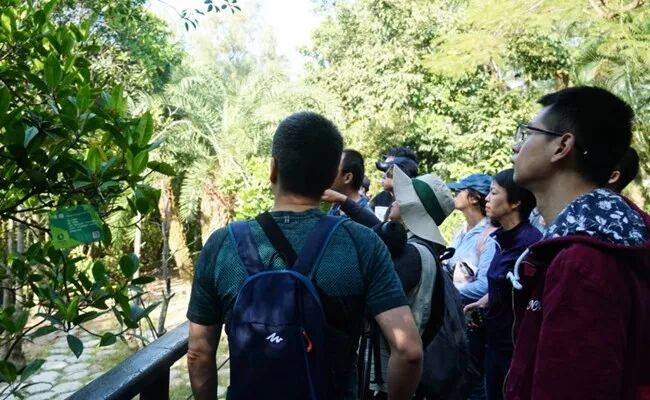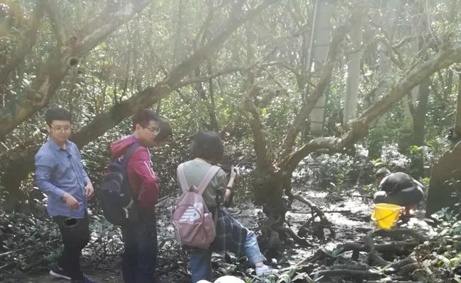 # [0 k5 E8 W6 a) @ 11月23日上午,“海洋微型生物生态学与应用技术”“海洋生物灾害与防控”课程走进福田红树林国家级自然保护区开展阳光课堂。此次阳光课程由海洋学部周进老师带队。