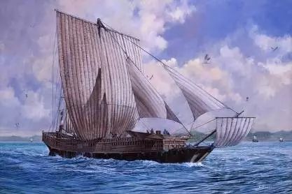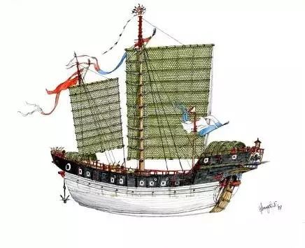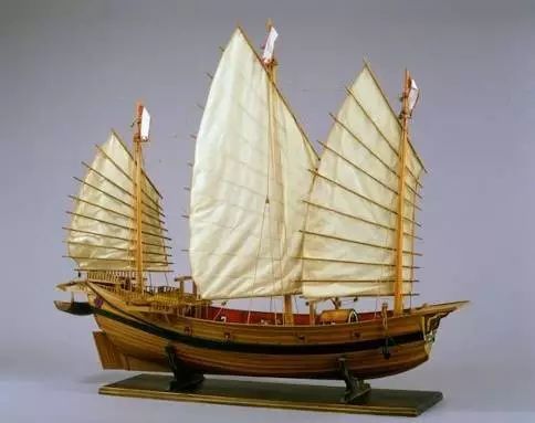 图19 中国帆船模型,有水密隔舱,耐水性好,即便船身有一部分破损漏水,也不会沉没。此外,耐侧风,扬帆行驶的性能高。 # H" y& I; W0 \