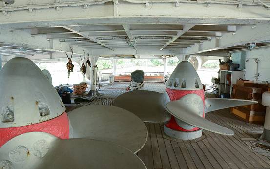 - X! @, S2 y! O* H6 }: r 最上甲板设有螺旋推进器(图8)、南极展览室、士官室、机长室、通信室(图9)、士官食堂(图10)等。