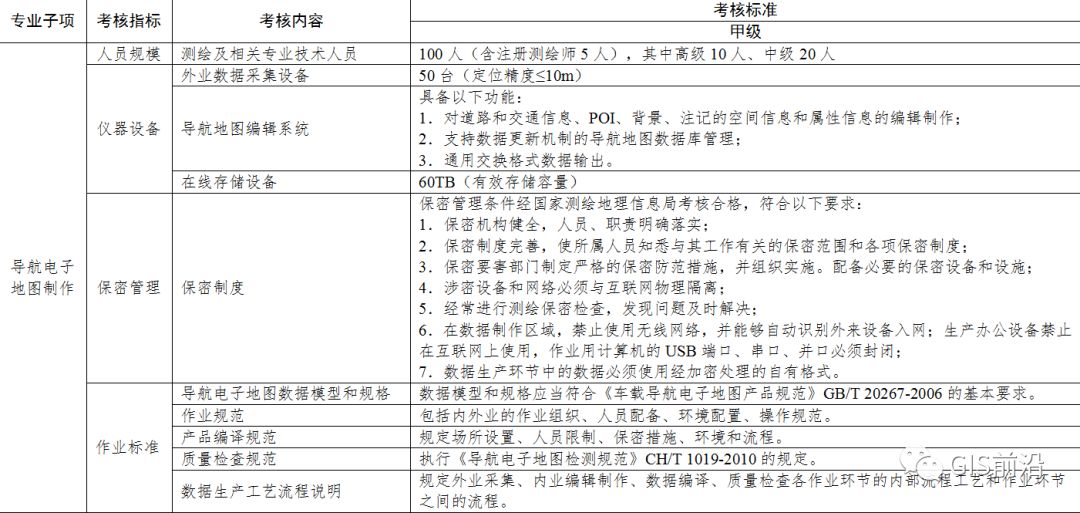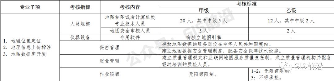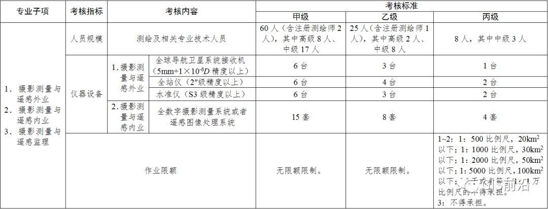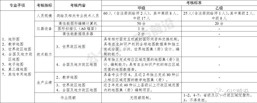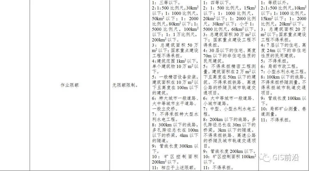 , M0 A+ G Q \1 v/ E 5.自本标准施行之日起满3年后,甲、乙级测绘资质单位的注册测绘师数量应当达到本标准的考核要求。更多干货关注公众号:GIS前沿,自本标准施行之日起满5年后,丙、丁级测绘资质单位也应当具备相应数量的注册测绘师,具体要求另行规定。 : g- [ f4 w7 X/ s+ I3 a+ U H
