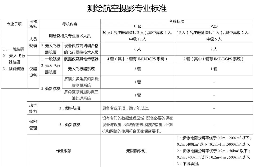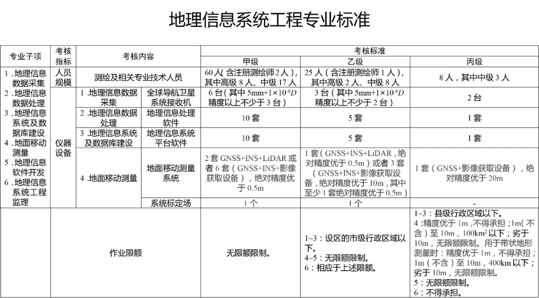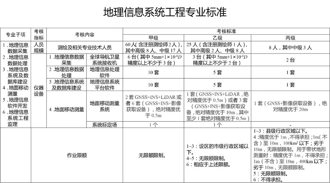 0 z0 V5 ?1 U1 _ o 突出测绘资质专业属性,进一步减少测绘资质申请条件,降低对申请单位的非测绘专业技术人员要求,取消无法定依据的前置考核条件,允许申请单位通过租赁等方式解决非常用贵重装备,不再以“学历+工作年限”认定专业技术人员,专业技术人员认定以人力资源和社会保障主管部门政策为准,从而更大限度减少政府对市场活动的直接干预,更利于测绘市场竞争。