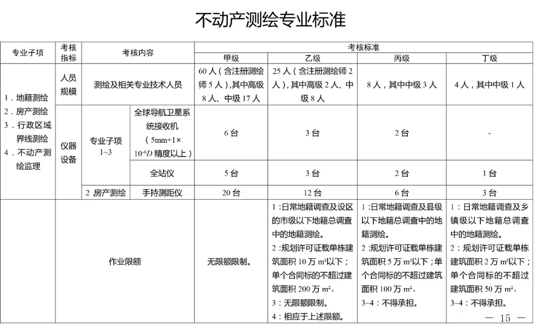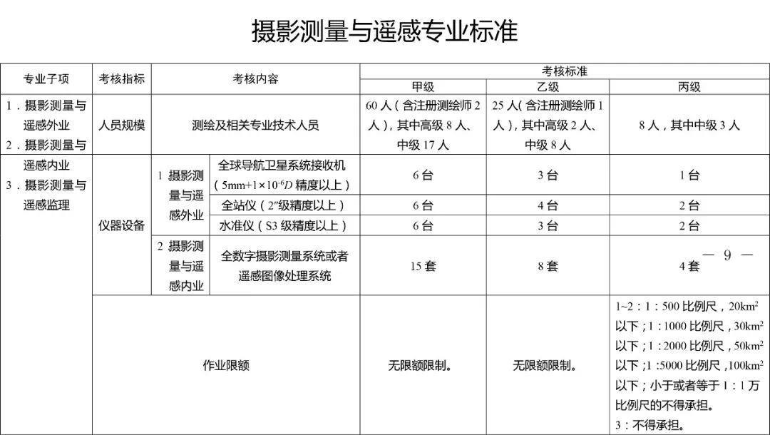, [1 c& b( a8 c$ j- z; u, f 5.自本标准施行之日起满 3 年后,甲、乙级测绘资质单位的注册测绘师数量应当达到本标准的考核要求。自本标准施行 之日起满 5 年后,丙、丁级测绘资质单位也应当具备相应数量的注册测绘师,具体要求另行规定。 % S3 b8 L* c I: N! P+ O' M$ `" p, ]' i Q