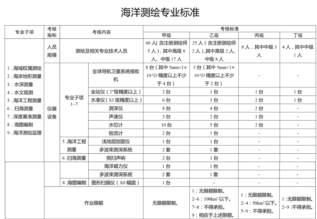 (1)在内陆江河湖泊等水域从事海洋测绘活动的单位,应当取得海洋测绘专业范围的相应专业子项。(2)海洋工程测量包含底质测量、浮泥测量、浅地层剖面测量、水下管线测量、港口与航道工程测量。 # c8 p+ o% t/ k7 n/ M
