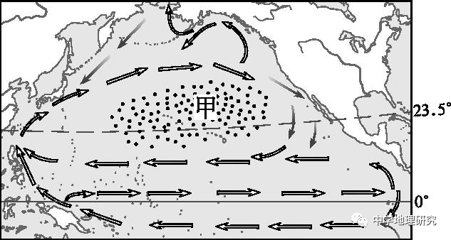 (1)指出图1甲所示“垃圾场”垃圾的主要来源地和指出所示“垃圾旋涡”旋转的方向。