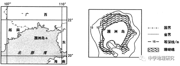 * A. C& L$ u G! V: l7 j 图7 广西涠洲岛位置及涠洲岛 9 Q. x2 n# A/ ~6 I