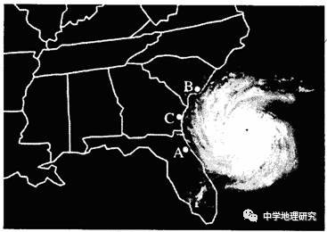 (3)飓风往往导致沿岸遭受海浪、海潮的袭击。若图示的飓风向西移动,中心到达C地时,A、B两地哪里更容易遭受风暴潮的袭击?分别说明两地遭受风暴潮袭击程度差异的原因。